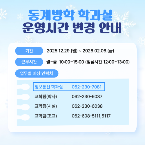 2025학년도 동계방학 중 행정부서 단축근무 시행 안내 2025.12.22